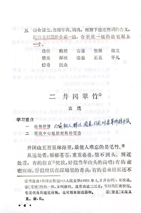 袁鹰的作品《井岗翠竹》被选入初中《语文》第4册(人教版1988年版)(图片来源:中国之声)