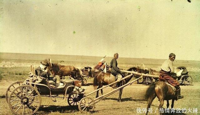 斯特凡加尔各答和库伦之间的老马车(照片上的是俄罗斯和法国国旗)