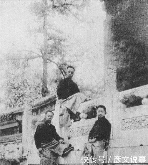 溥仪和英语老师,还有弟弟溥杰,小舅子(婉容亲弟弟)润麒。下边的外国人就是溥仪的英文老师庄士敦,左边的黑衣人是溥仪,中间的是小舅子润麒,最右边的是弟弟溥杰。