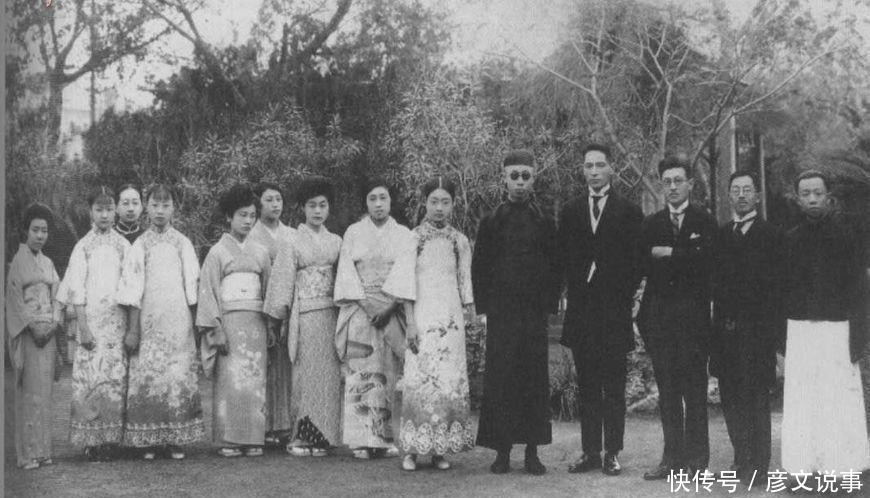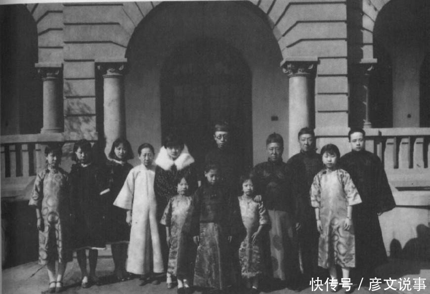 溥仪、婉容在静园,后排中间两个最显眼的就是,婉容还穿着大毛领的衣服。其余人等,从左边起:韫馨、韫和、韫颖、婉容母亲、韫欢、溥任、韫娱、载沣(溥仪父亲)、婉容父荣源、韫娴、润良