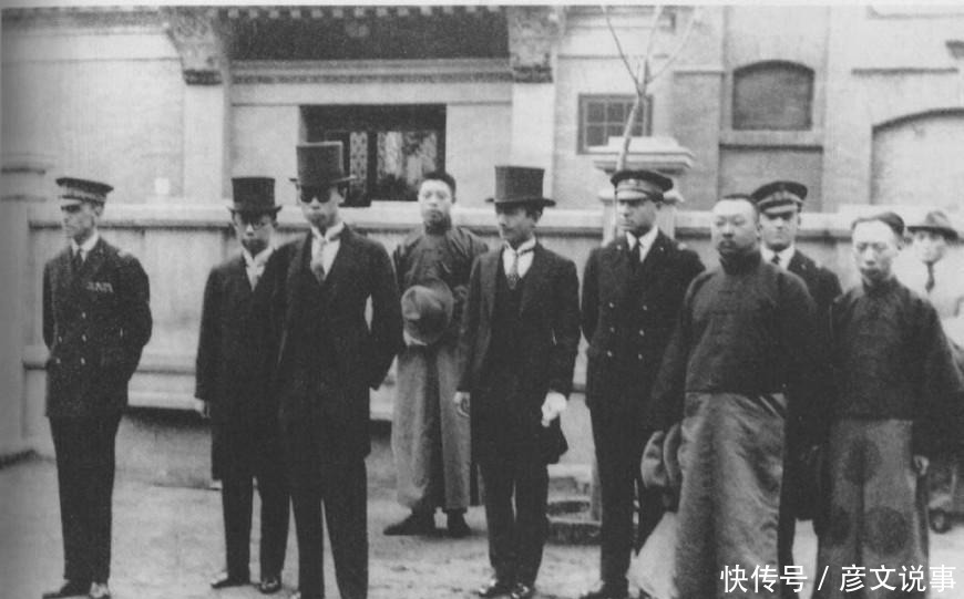 婉容、婉容母亲、溥仪、溥仪两个妹妹在日本公使馆,和日本公使馆人员合影。
