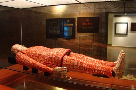 但是,第三代南越王——赵眜的儿子赵婴齐的墓却没那么幸运了,结果被孙权的人给找着了。据晋人王范所写的《广交春秋》记载,赵婴齐的墓被打开后,发现婴齐穿的是金镂玉衣,身上的饰件是纯金的,还有36颗玉玺金印,三枚铜剑,铜剑上面还刻有精美的龙状花纹。