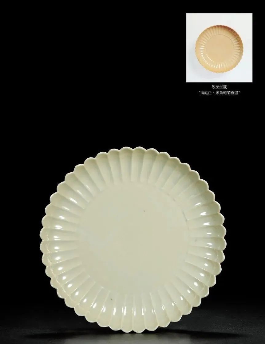 清雍正?米黄釉菊瓣盘