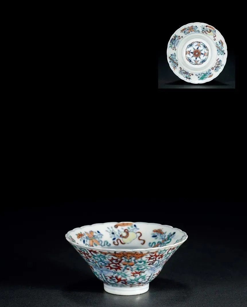 清雍正?斗彩缠枝莲八宝纹斗笠盏