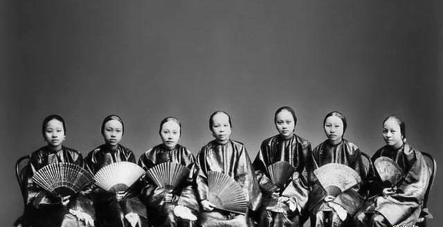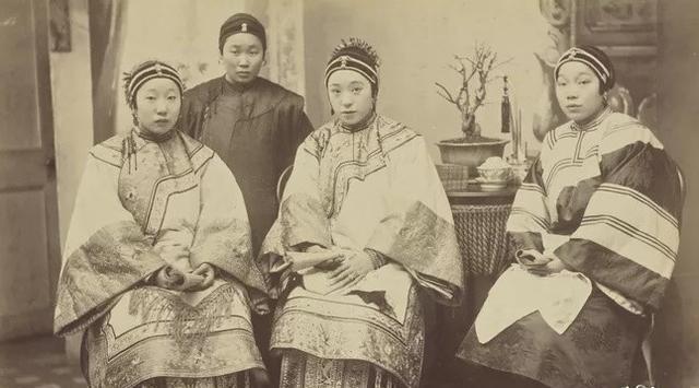 说到中国古代的婚姻制度,我想大多数人的第一印象就是"三妻四妾"吧。其实不然,在中国古代施行的是"一夫一妻"制,当然了可以有很多"妾"。古语有云:"诸侯无二嫡",说的就是诸侯也不能娶两个妻子。照片中为清末大户人家的妻妾,中间坐着的应该就是妻。