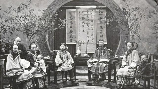 古人为什么要施行"一夫一妻"制呢?这主要是基于宗法制的考虑,在中国古代施行"嫡长子继承制",只有妻生的孩子才能被称为嫡子,在封建社会是享有很多"特权"的,只要嫡长子在,家产继承,袭爵都是他的。照片为清末大户人家妻妾。