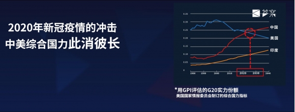 在抗击疫情的过程中,中美的此消彼长发展的变化非常快。比如说,根据国际货币基金组织统计,去年我们的GDP是美国的68%,今年大概会达到73%。这种比较是按照GDP来计算的,也有研究会拿购买力评价指数进行比较。我认为最好的指标是美国国家情报委员会做的一个研究。