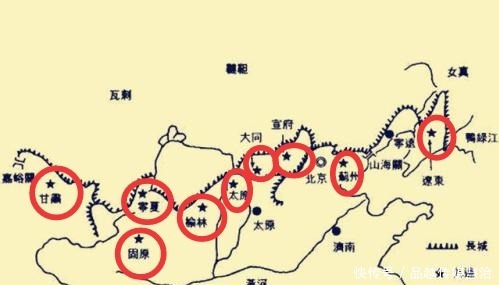 弘治年间,为了防御北部蒙古,明廷在东起鸭绿江、西抵嘉峪关,绵延万里的北部边防线上相继设立了辽东镇、蓟州镇、宣府镇、大同镇、太原镇(也称山西镇或三关镇)、延绥镇(也称榆林镇)、宁夏镇、固原镇(也称陕西镇)、甘肃镇等九个边防重镇,史称"九边重镇"。