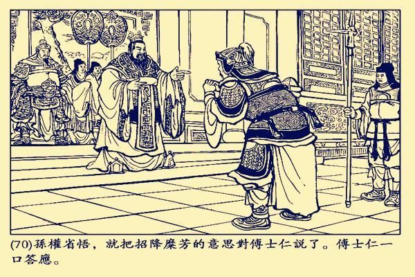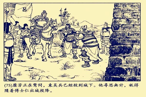 正说间,忽报吕蒙引兵杀至城下。芳大惊,乃同傅士仁出城投降。