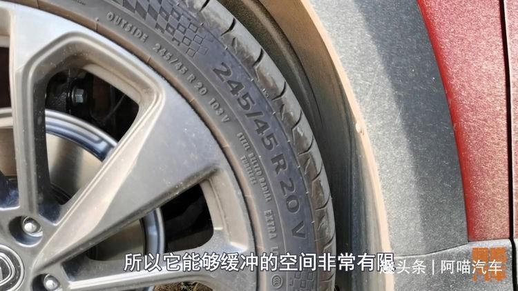 所以跑这种铺装路面的话,这种扁平比低的薄轮胎会更有优势。但是如果我们路面没有铺装好,或者路面比较烂,那么这种扁平比低的薄轮胎,它的优势就没那么明显了。比如在路上开着开着,遇到一个坑,扁平比高的厚轮胎,就可以依靠轮胎橡胶的减震,去化解对于轮毂和整个车身的冲击。但是薄的轮胎由于太薄了,所以它能够缓冲的空间非常有限,冲击力就直接冲击到轮毂身上,或者直接冲击到车身上,严重的时可能导致轮毂变形,或者直接导致轮毂断裂。