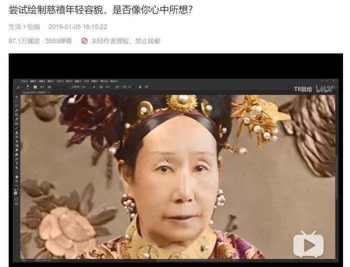"因为自己是做写实方面绘画的,偶然看到慈禧的老照片,就根据自己对这个人物面部结构的理解,加上自己的美术基础画了这张画。"
