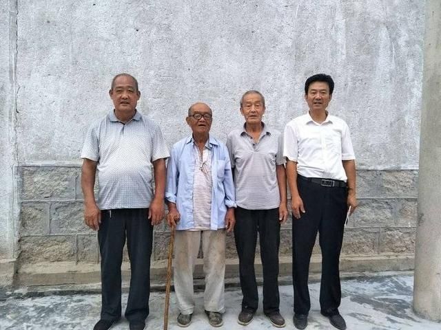 .村史材料主要提供人郭殿海、郭相林、郭殿成与作者(由左开始)