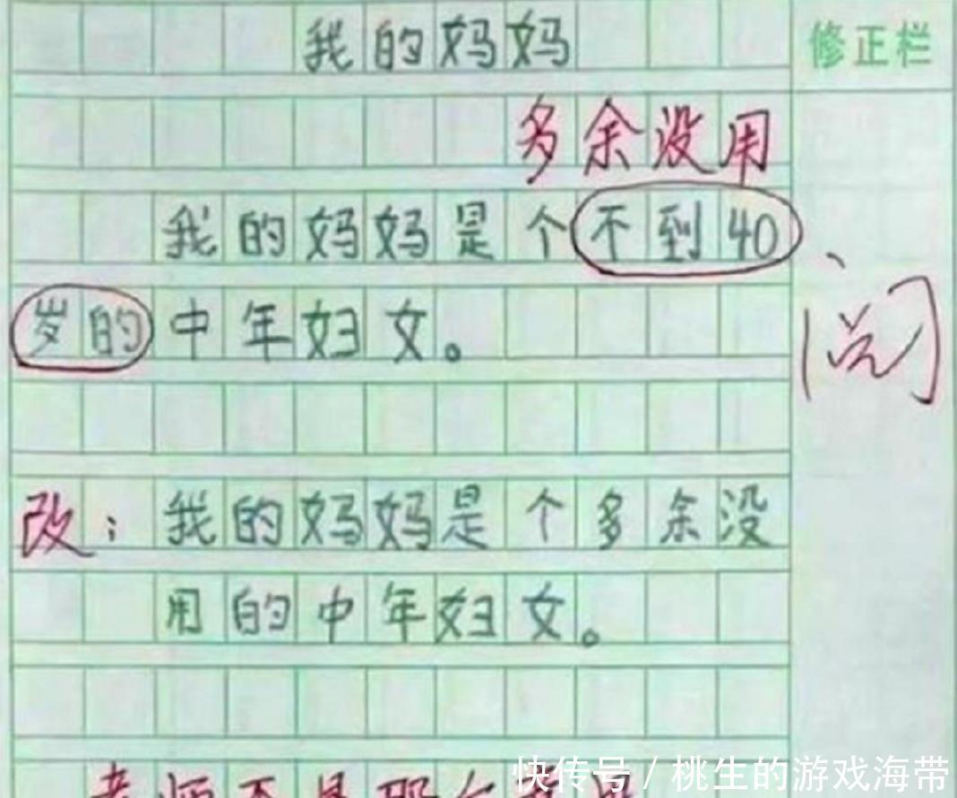 就比如这位老师布置的一篇名为《我的妈妈》的 作文。老师的本意是想看看孩子们会如何赞美自己伟大的母亲,谁知道看了作文之后差点把老师给笑岔气了。