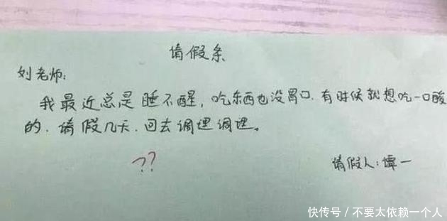 谭一小朋友,听说你最近总是睡不醒,吃东西也没胃口,有时候就想吃口酸的,还想请假几天回去调理调理,