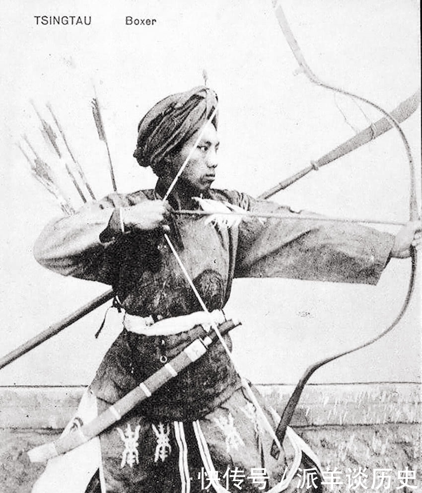 除了八旗军队和满洲贵族,其他民族也被要求使用清弓,这张照片是使用清弓的少数民族兵勇。