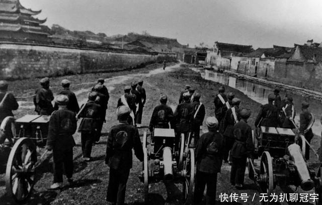 第六张照片或许大家并没有见到过,这是清朝组件的常胜军,虽然名义是清朝的,但实际的管辖权却在洋人的手上,因此也称作洋枪队。当时八国联军侵华时,清政府花钱让列强来帮忙镇压太平天国运动,列强也就招募了这样的洋枪队。此图正是洋枪队在宁波进行的军事演习。