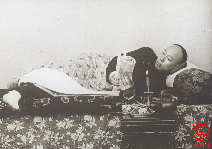 秉烛读书的男子。