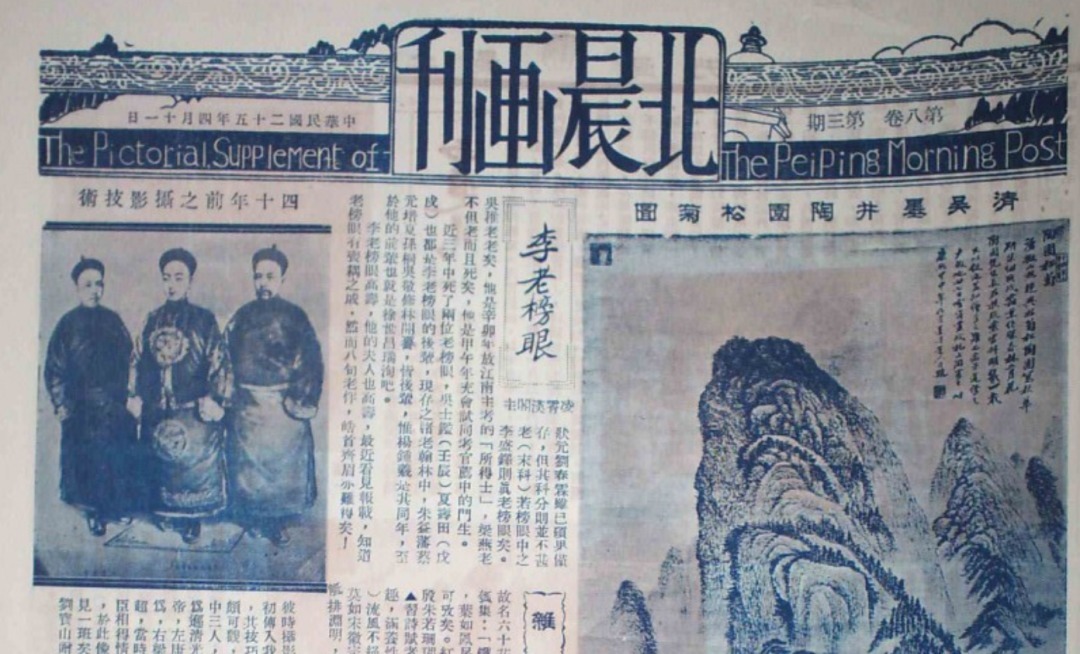 这张伪照首次面世,是在1936年4月11日,由《北晨画刊》以《四十年前之摄影技术》为题在首页刊出。照片说明中写道: