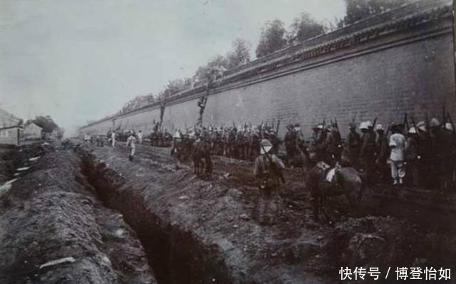 照片中是中国民众竞相扶梯相助八国联军,当时清军已经逃个精光。