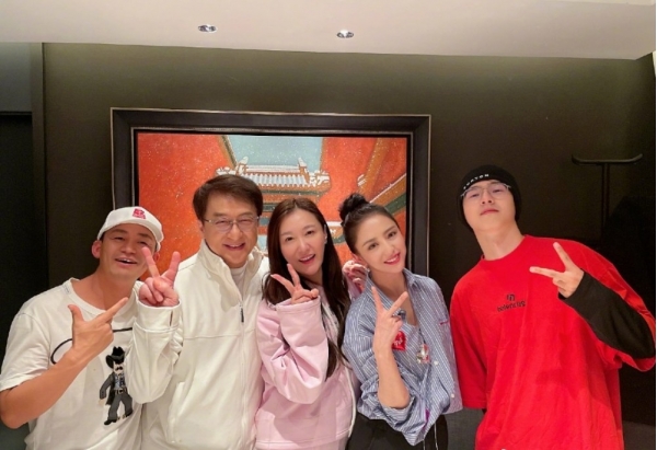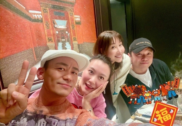 令人意外的是,在另一张合影上,陈思诚也罕见露面,虽然在角落里,但是他标志性的棒球帽,和大大的微笑,还是成功引起了大家的注意。