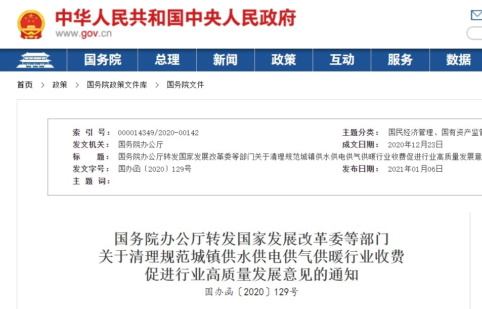 近期,国家发展改革委等部门发布《关于清理规范城镇供水供电供气供暖行业收费促进行业高质量发展的意见》,就清理规范城镇供水供电供气供暖行业收费提出意见,自2021年3月1日起施行!
