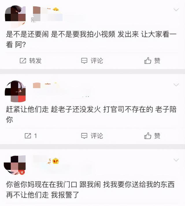 据爆料称,胖胖在和另一位女生分手后,他的父母还不停骚扰女方,在对方家门口闹,要女生把胖胖送的东西还回去。最后该女生被逼到忍无可忍,发博控诉还要报警。