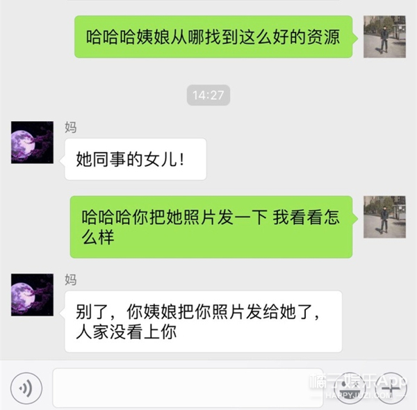 但是妈妈却说,"别了,你姨娘把你照片发给她了,人家没看上你。"