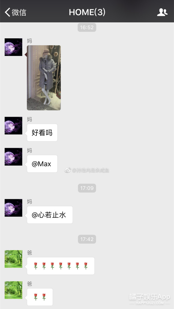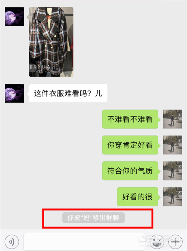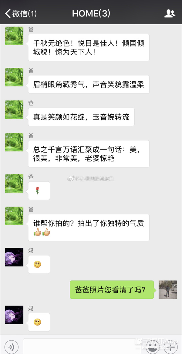 妈妈在群上发了一张照片,艾特爸爸问好不好看。