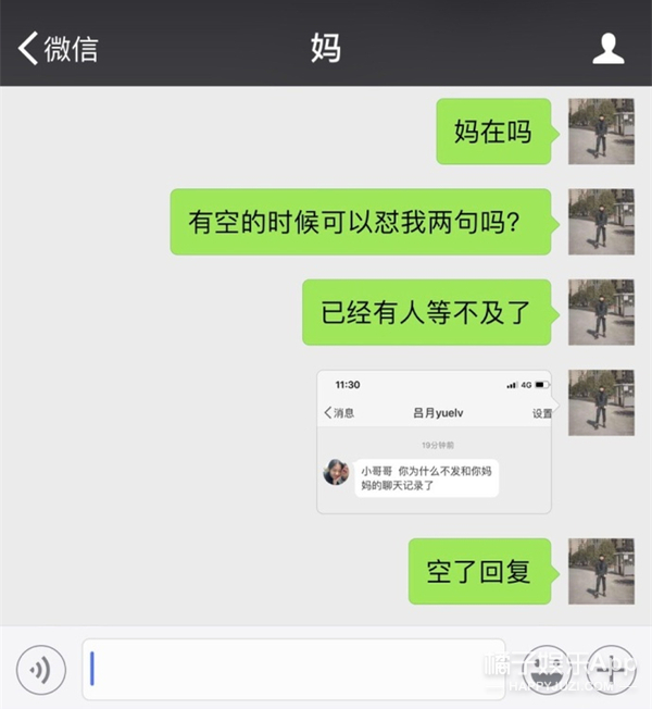 妈妈立刻给儿子发了一个外卖软件的红包,此刻儿子又在对话框打下,"家里没榨菜了吗?"