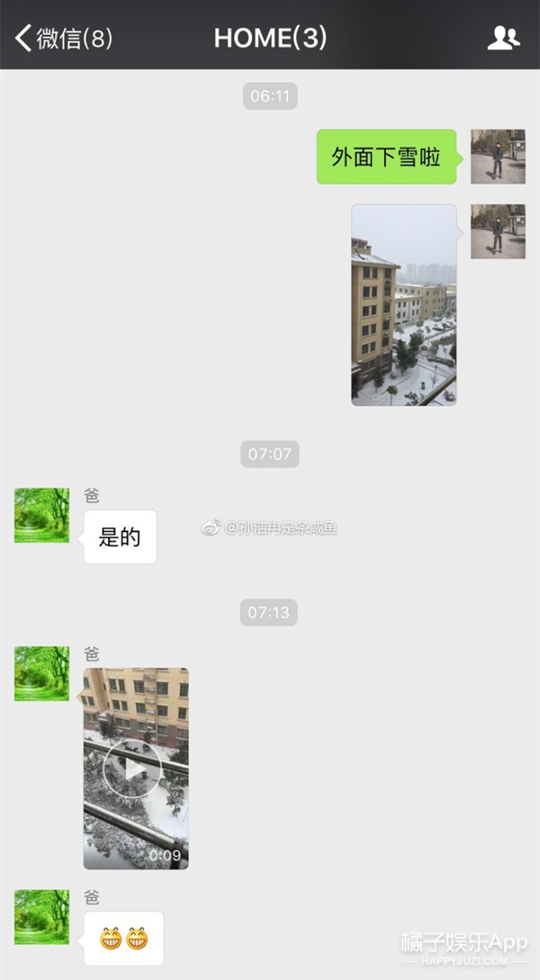 上海下雪了,爸爸和儿子特别的开心,在群里发各种小视频,超开心的!