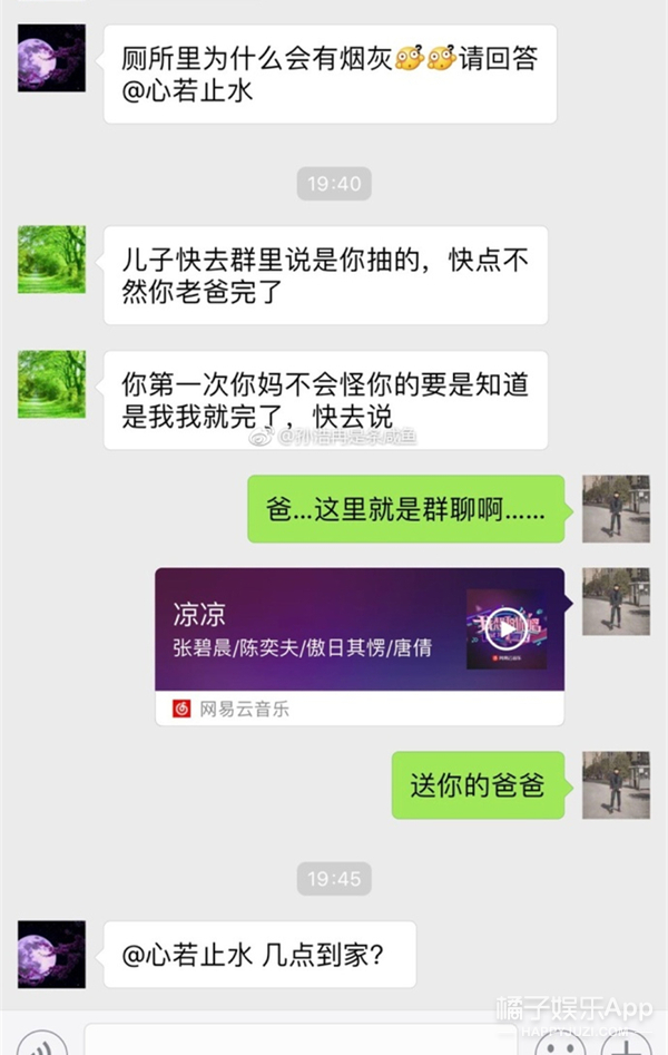 此刻只见爸爸在群里说到,"儿子,快去群里说是你抽的,快点,要不然你老爸完了。你第一次,你妈不会怪你的。"没错,叔叔本是私聊给儿子的,发错了...