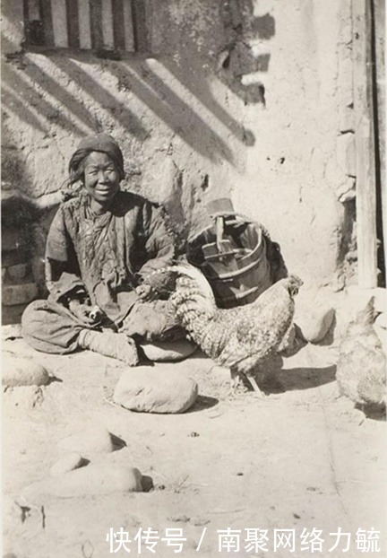 图四:晚清时期养鸡的农妇照片。照片中的是一位清朝时期的农村妇女,她背靠着坐在墙下面,前面是她养的一只鸡。虽然她穿的很破烂,日子过的很是清苦。但是透过她的表情,我们却可以感受得到她内心的满足。可以看出,她的追求很简单,内心过得还是挺富足的。看到这,不知各位有何感想?欢迎留言讨论。