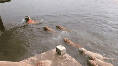 主人带汪星人一起游泳!
