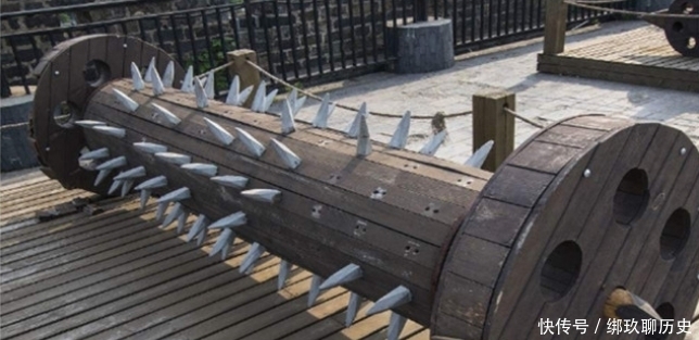 3.夜叉雷,对于这款体型庞大的兵器,想必大伙都不会陌生。在古装影视剧中,常出现在城门楼上,被士兵用来防御。这是古代常装备的守城兵器,在整体质量大,而且轴心上安装有几十或者上百颗锋利无比的钢针。如果有敌军敢来侵犯,该兵器从城楼扔下去,敌军就会被砸成肉饼,具有极大的打击力和威慑力。同时,这也是一款进攻型武器,通常是由战马在前方拉动着跑,可以一下收割大量的敌军。