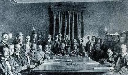 图:《辛丑条约》签订现场。1900年8月19日,慈禧在逃出北京后的第五天,给李鸿章发了道上谕,要求他火速北上,与庆亲王奕劻一起主持议和。8月24日,慈禧再次给李鸿章发去电报,告诉他可以“便宜行事”,朝廷“不为遥制”。9月15日,慈禧再次致电李鸿章,敦促他马上北上。1901年9月7日,李鸿章、奕劻代表清政府与11国代表正式签订了《辛丑各国和约》,简称《辛丑条约》。