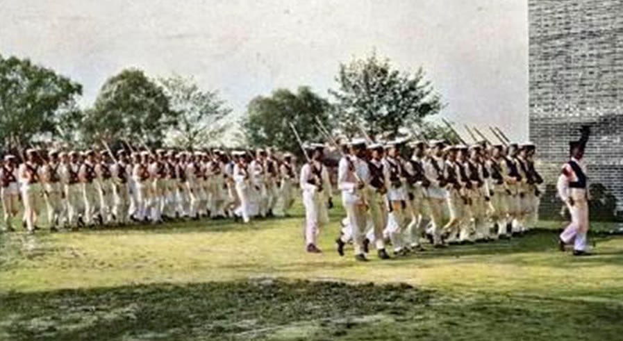 图3:清朝光绪二十九年(1903年),清廷裁旧军、练新军。图为正在训练中的浙江新军,此时,杭州旗营亦发生了变化;旗营子弟纷纷赴京谋求出路,旗营新增的火炮营,士兵竟全是汉人。