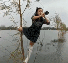 gif趣图: 上帝给了你苗条的身材和修长的大腿, 你却用它骑二八杠