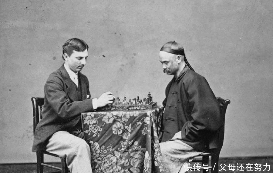 1869年,上海,大名鼎鼎的容闳与外国人下国际象棋。容闳是第一个毕业于美国耶鲁大学的中国留学生,做了两件对中国近代史影响深远的事:第一,参与创建了上海江南机器制造总局,它是晚清最重要的军工厂;第二,组织了第一批官费赴美留学幼童。