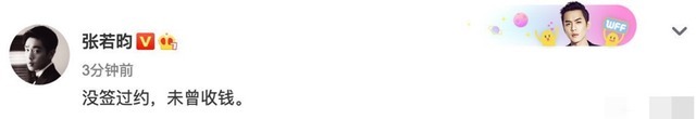 不过张若昀在之前被曝欠款时,霸气回应:"没签约过,未曾收过钱。"
