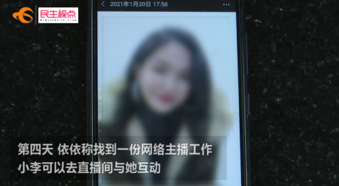 第四天,依依告诉小李,她找到一份工作,暂时就不见面了。不过,对方表示,小李可以去直播间看她,与她互动。