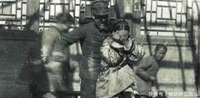 1901年八国联军攻占北京,当时慈禧太后和光绪皇帝早已逃走,城中百姓沦为粘板上的鱼肉,图中的一名士兵站在强抢民女,虽然女孩子无比害怕但是根本无力反抗,当时街上有很多同胞看到女孩被欺负但是他们只能逃兵,什么都做不了。