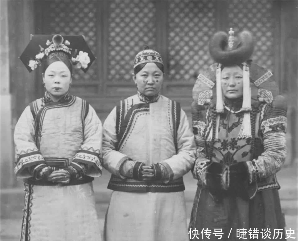 但到了晚清,很多汉族女性的穿戴也向满洲女性服饰靠拢,光看衣服,有的时候不好区分,那么可以看这三点: