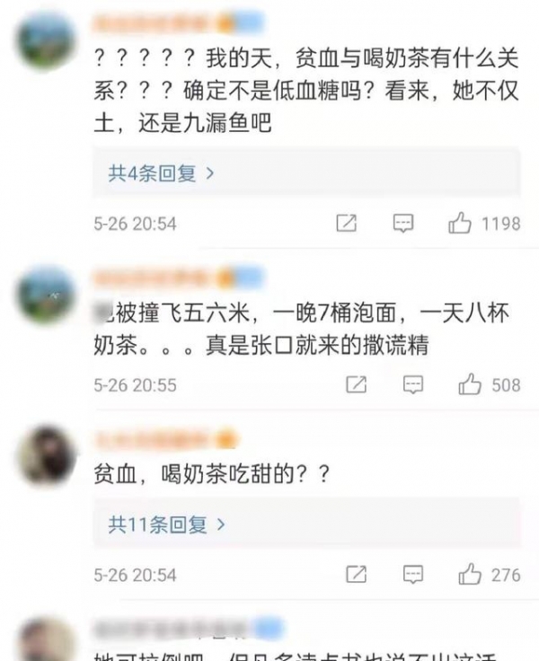 但网友可不吃她这一套,直接指出“贫血与喝奶茶有什么关系”“贫血的人现身说法:一点点用也没有”“但凡多读点书也说不出这话”,吐槽吴宣仪没文化,奶茶实际上并不能缓解贫血。