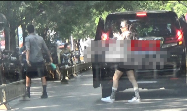 两人衣着随意,霍思燕甚至“披头散发”的就下车了,一头长发边走边“肆意”地飞扬,姿态豪迈。
