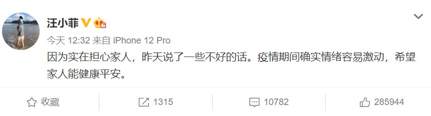 对于忽然“被离婚”,汪小菲也是一头雾水,有报道称,他甚至并不知情。但这次,他没有像以往一样用秀恩爱的方式来坚定辟谣,而是在微博上解释自己前晚所说言论:“出于对家人的担心,疫情期间情绪容易激动,希望家人能平安。”,此外还秒删了一条“辛苦了”的动态,原因未知。