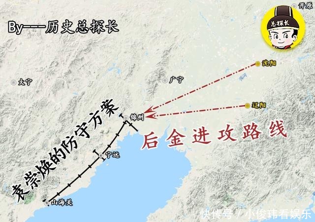 袁崇焕主张前线设防,在山海关之外将锦州、宁远两地战线联结起来,拱卫山海关