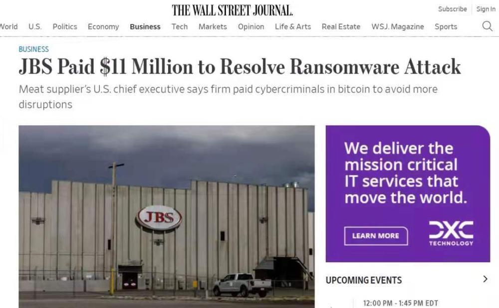 刚刚,黑客又成功完成了一次勒索。当地时间 6 月 9 日,全球最大肉类供应商 JBS 宣布,已向黑客支付了价值 1100 万美元的比特币赎金。此前,因遭受黑客攻击,JBS 一度关闭了全美工厂,导致牛肉、猪肉产量大跌,甚至危及美国肉类供应链。