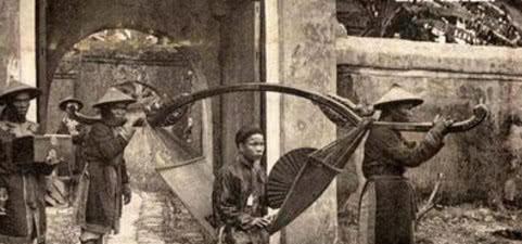 2:越南,越南在元朝时期就是中国的藩属国,清朝末期,越南成为法国的殖民地,图为越南衙官出行时场景,他们座的轿子比较奇特,好像现在的吊床,