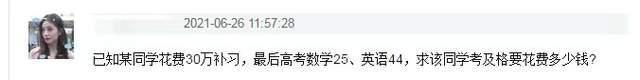 消息一经爆出,立马引起了网友的热议。大家纷纷感慨,粉丝辛辛苦苦花了30万的补课费,没想到竟然换来了偶像高考数学25、英语44的成绩。
