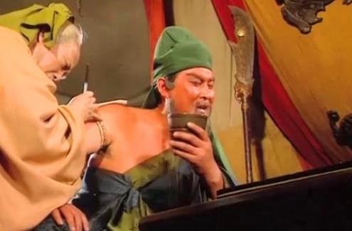 我们研究三国这段时间的历史,应该看陈寿缩写的《三国志》,在《三国志·蜀书六·关张马黄赵传》中记载:羽尝为流矢所中,贯其左臂,后创虽愈,每至阴雨,骨常疼痛,医曰:"矢镞有毒,毒入于骨,当破臂作创,刮骨去毒,然后此患乃除耳。"羽便伸臂令医劈之。时羽适请诸将饮食相对,臂血流离,盈于盘器,而羽割炙引酒,言笑自若。